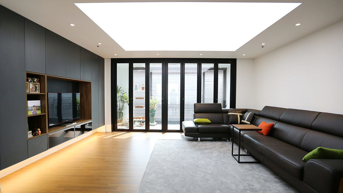 마지막으로 소개할 디자인 인테리어는 최근 유행하고 있는 무문선과 무 몰딩 그리고 9mm 문선 시공이다. 무 몰딩은 말 그대로 몰딩이 없다는 것인데, 이때 몰딩은 천정 몰딩을 말한다. 천정 몰딩 없이 벽과 벽이 만나는 자체로 마감을 하는 것을 말하는데, 단순히 몰딩을 시공하지 않는 것이 아니라 기존에 몰딩이 있던 벽면을 고르게 마감해주어야 한다. 이 때문에 무 몰딩 시공은 목공 작업을 하여 페인트 시공을 하거나 벽면을 도배로 진행하는 경우에는 도배 인건비가 증가되는 시공 방식이다.