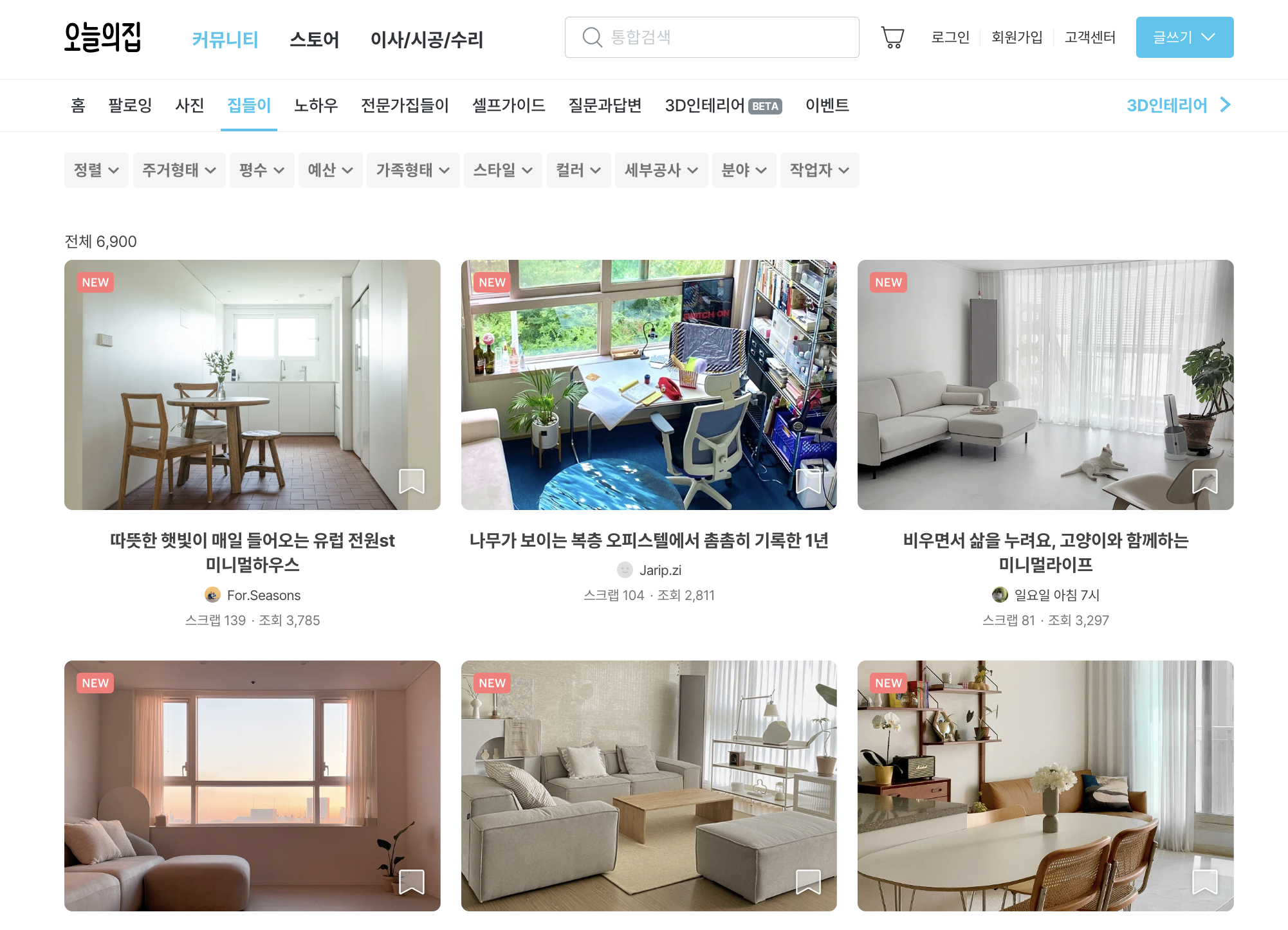 오늘의 집을 구경하다 보면 정말 시간이 순삭으로 지나갈 정도로 빠져들게 되고 우리나라에 이렇게 이쁜 집들이 많았나라는 생각을 하게 된다. 과거에는 사람들이 먹고 살기 급급하다 보니 인테리어에는 큰 관심을 가지지 못했던 것 같은데, 북유럽 및 선진국처럼 사람들이 인테리어에도 많은 관심을 가지게 된 것 같다.